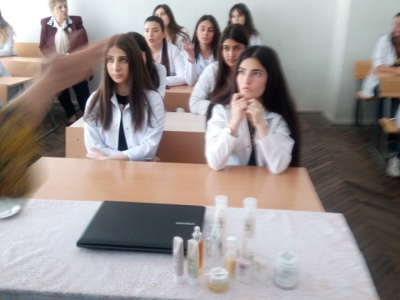 Մեհրաբյանի անվան բժշկական ինստիտուտում 02.05.2019թ. կայացավ հանդիպում “ՆԱԻՐԻԱՆ” ընկերության հիմնադիրների խորհրդի անդամ՝ Անահիտ Մարկոսյանի հետ: Տիկին Մարկոսյանը հանգամանալից ներկայացրեց ընկերության արտադրանքը, որը պատրաստվում է բացառապես ձեռքերով բարձրորակ եթերայուղերի, բուսական յուղերի և բույսերի մզվածքների կիրառմանբ: Ուսանողները ծանոթացան դեմքի, լոգանքի և մարմնի խնամքի ինչպես նաև հատուկ խնամքի տեսականիի հետ: Ներկայացվեցին նաև հավաքածուներ՝ հակատարիքային, հակակորյակային և զգայուն մաշկի համար: Ձեռք բերվեց պայմանավորվածություն ծանոթանալ կոսմետիկ միջոցների արտադրությանը և վարդերի թերթիկների հավաքմանը Արա գյուղում: